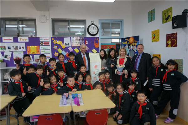 下午,客人們來到了東部校區(qū),參觀世外小學(xué)雙語部和PYP部。常務(wù)副校長陸素英女士、副校長陳吉菁女士、PYP部協(xié)調(diào)員Halina女士攜全體師生熱情接待了他們。