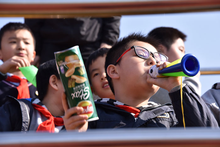 境內(nèi)部一年級的孩子們身著海陸空軍服,昂首闊步地向主席臺走來。他們以恢弘的氣勢向大家展示著團(tuán)結(jié)、陽光、執(zhí)著的嶄新風(fēng)貌。