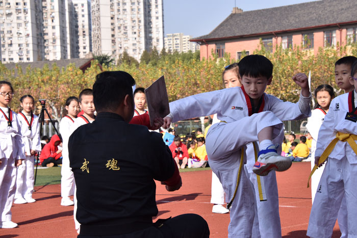 境內(nèi)四年級的學(xué)生們展示了剛勁有力的武術(shù)操、精彩的武術(shù)表演悄然成為校園一道亮麗的風(fēng)景。孩子們動作靈活,如雛鷹展翅,熱情奔放,似猛虎下山,虎虎生威,如凌波踏浪,又似蛟龍出水,震撼人心,給人以美的享受。