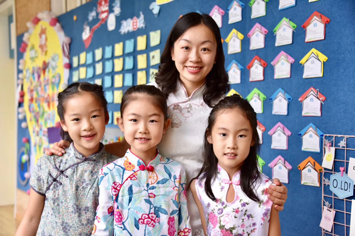 外籍教師們也紛紛身著中國(guó)傳統(tǒng)服裝。無(wú)論是旗袍還是漢服,也別有一番韻味,中西文化在此相融,國(guó)際情懷在此呈現(xiàn)。