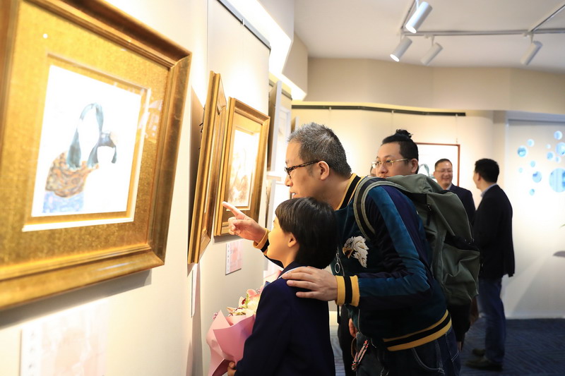 本周五就是世外小學25周年的校慶,今天的這場畫展開幕式也是雙語部慶祝校慶的活動之一。在這個特殊的日子里,來自五A班的小畫家程卓添同學將自己積累多年的藝術(shù)作品整理匯集后與全校師生共同分享,作為對學校生日的獻禮。