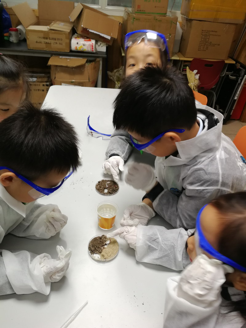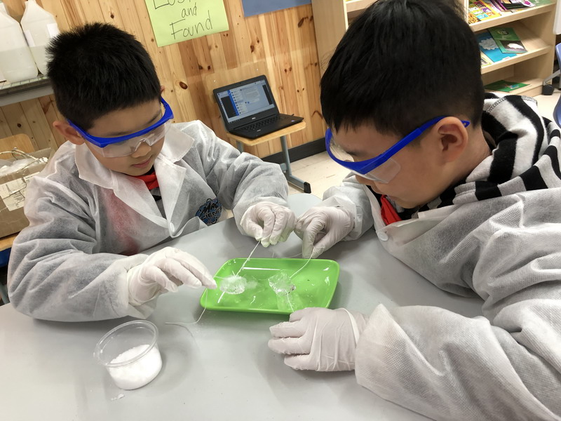 Our grade 3 students did three experiments relating to states of matter: they investigated how ice and salt react, how air pressure can be used in machines, and the best part was they got to make slime! These experiments helped them understand the movement of atoms in different states of matter.