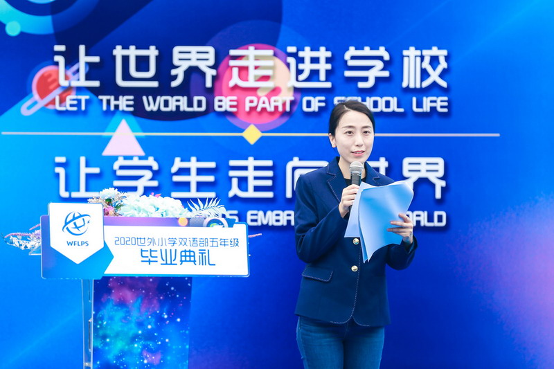 開場舞之后,世外小學創始人王小平女士、世外小學校長張悅穎女士上臺致辭。校領導對孩子們的期盼與寄語,化作一聲聲美好的祝福,伴隨孩子們展翅翱翔。