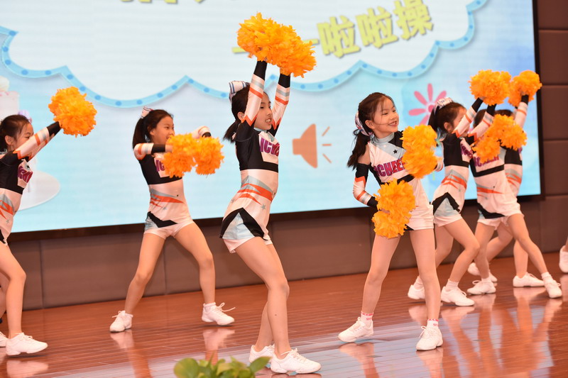 生日會(huì)在一段陽光而歡快的啦啦操表演中隆重拉開帷幕。這群三年級(jí)女孩前不久剛在區(qū)學(xué)生陽光體育啦啦操比賽中榮獲一等獎(jiǎng)。