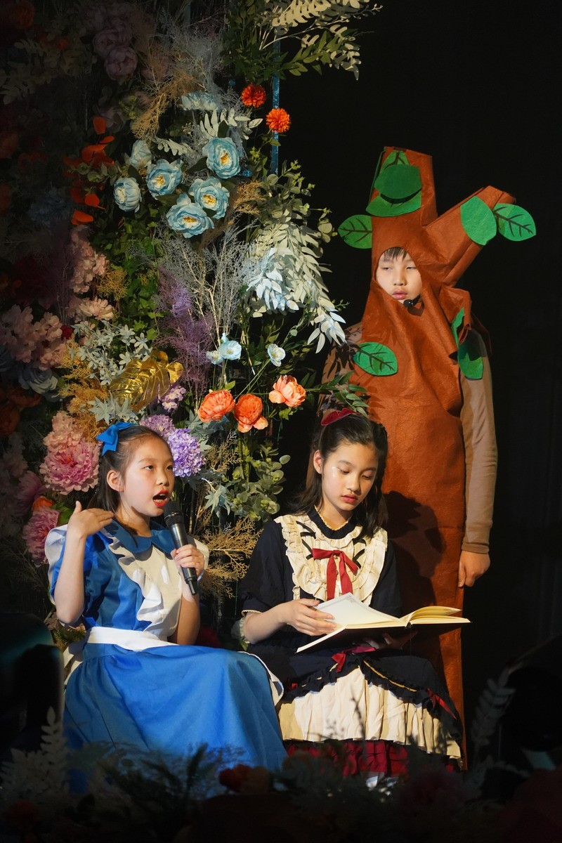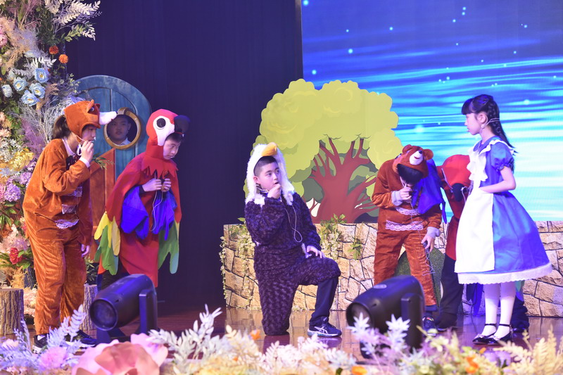 The reason why we choose the popular English Fair Tale is that we hope the children could be brave and naive just like Alice. The interaction between the people and the things around us is unpredictable. While we are on the growth path, we should keep exploring, and witness the miracles in the world.
