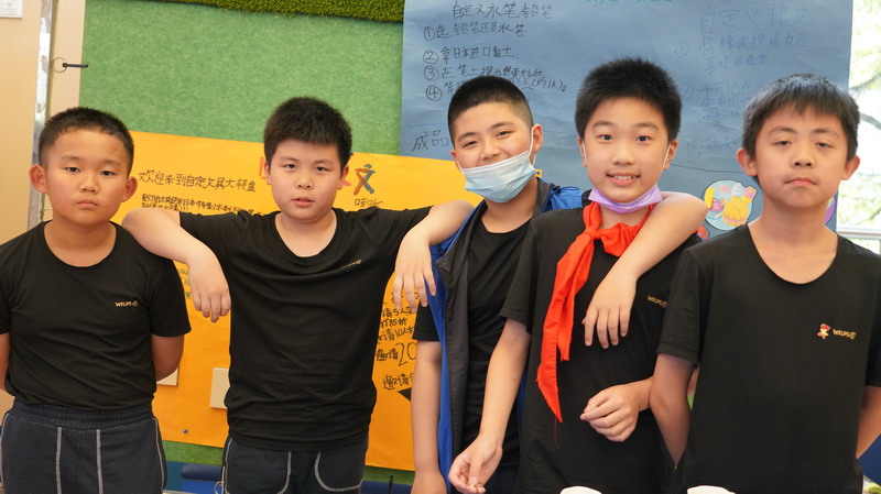 五年級的學(xué)生以小組為單位,全員參與課程學(xué)習(xí)和活動,他們在老師的指導(dǎo)下完成了:成立公司、頭腦風(fēng)暴創(chuàng)意產(chǎn)品、撰寫商業(yè)計劃書、策劃銷售方案等等一系列事情,這些事情是他們以前從來沒有做過的。一路走來,并不一帆風(fēng)順,碰到問題咨詢老師和家長,組內(nèi)意見分歧時說服對方或者學(xué)會妥協(xié)。相信學(xué)生們在完成項目的過程中,不僅習(xí)得了本課程相關(guān)知識,也學(xué)會了與他人合作的技巧。