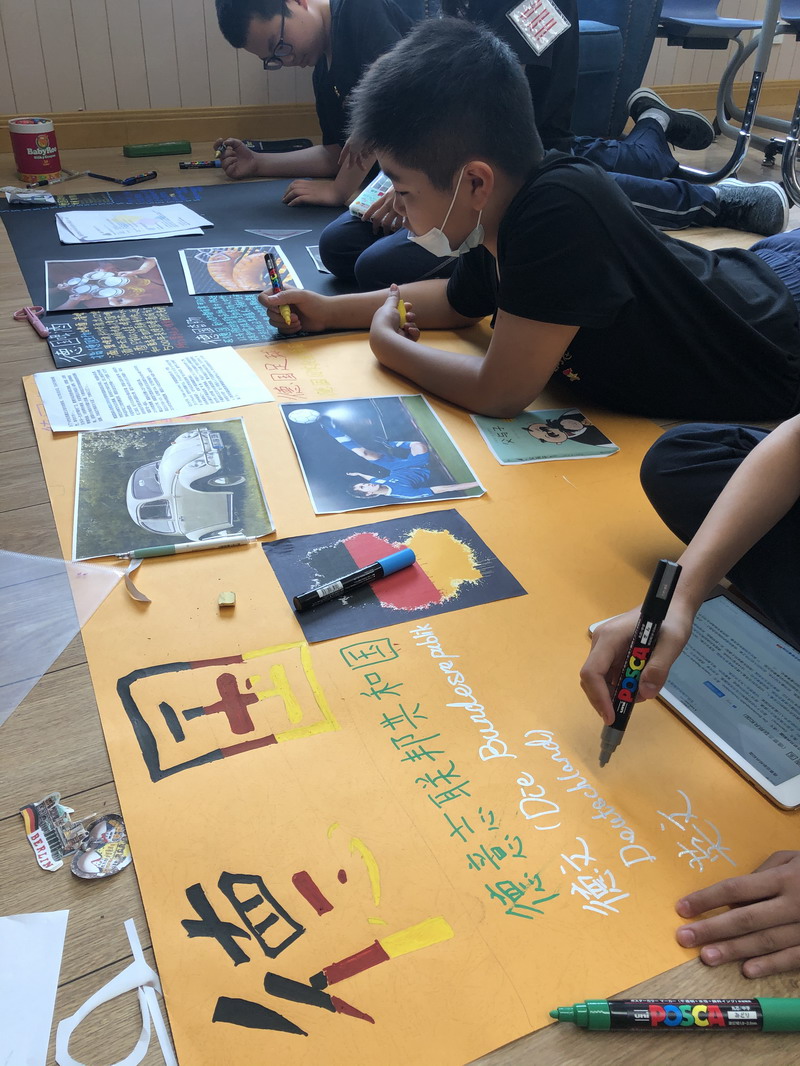 一起繪制宣傳海報Drawing the posters.