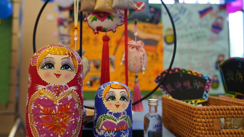 這次挑戰(zhàn)賽的形式是模擬國際貿(mào)易展銷會,每個展臺的產(chǎn)品設(shè)計都與各自的模聯(lián)代表國相關(guān)。The form of the competition is like International Trade Market. Each booth presents the design of the items of a rep country.