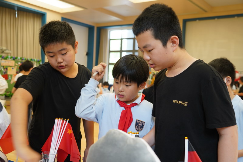 “財商課程”是世外小學(xué)雙語部五年級畢業(yè)課程之一,它以經(jīng)濟(jì)為主線,以淺顯易懂的方式介紹與貿(mào)易及市場相關(guān)的經(jīng)濟(jì)學(xué)知識,幫助學(xué)生理解大多數(shù)國家是怎樣在經(jīng)濟(jì)上相互依存的。整個課程活動重視對學(xué)生品格、道德規(guī)范、公眾表達(dá)的培養(yǎng),對閱讀、寫作和數(shù)學(xué)等能力的學(xué)習(xí)和提升。”FQ Course” is one of WFLPS Bilingual Section Yr5 graduation topics. It is based on the economy to introduce the trade market and relevant economic knowledge in a simple method to help the students know how the majority countries rely on each other in economy aspect. The whole activity focuses on the students’ morality, rules, how to express themselves, to develop the reading, writing, maths skills and abilities.