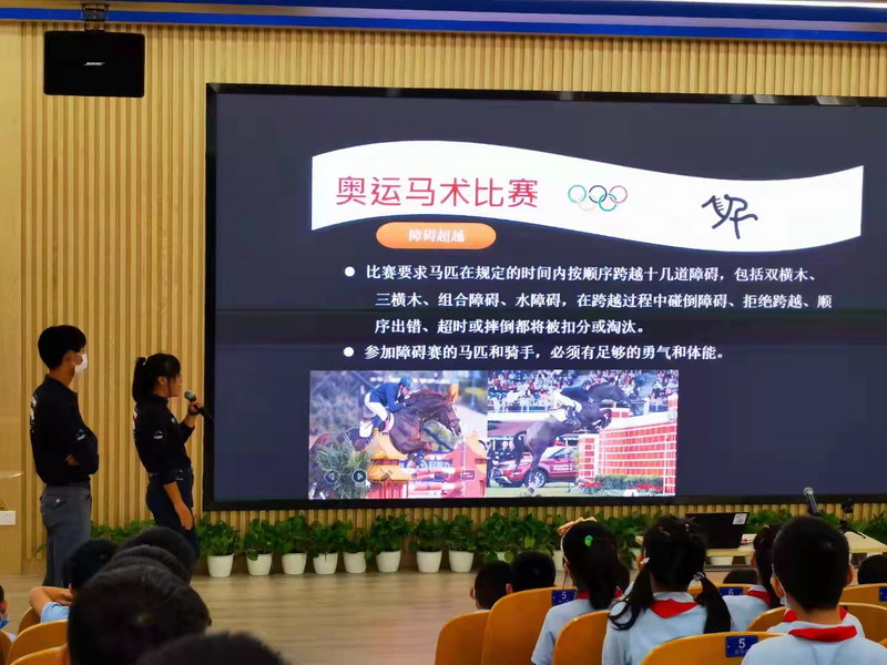 通過簽署安全協議,觀看視頻,同學們明確了進入馬場的要求和注意事項。他們還了解了馬的品種、習性、各身體部位的作用及喂養方式,為和馬兒進一步的親密接觸打下堅實的理論基礎。