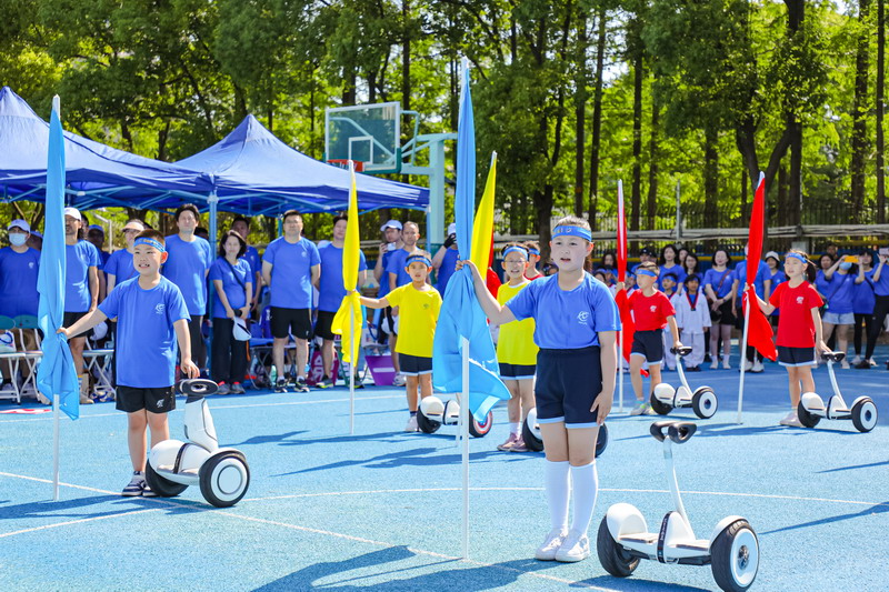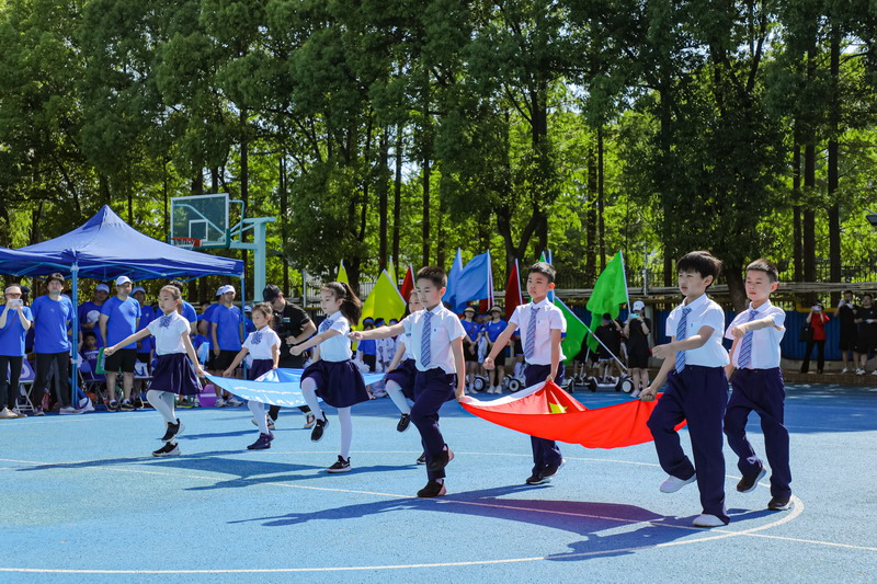 陸校長為本次活動致辭;梅爸爸代表全體二年級學生爸爸發言。隨后,王校長、陸校長及各班家委代表啟動比賽開幕儀式。