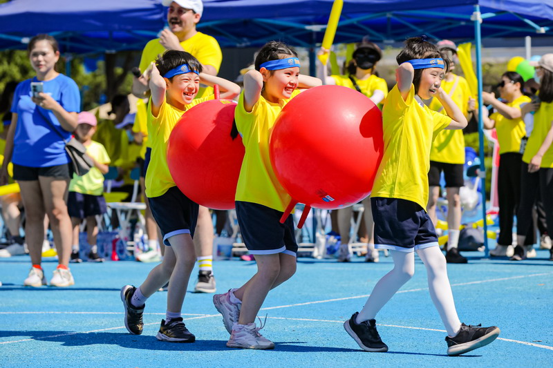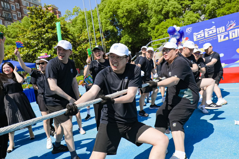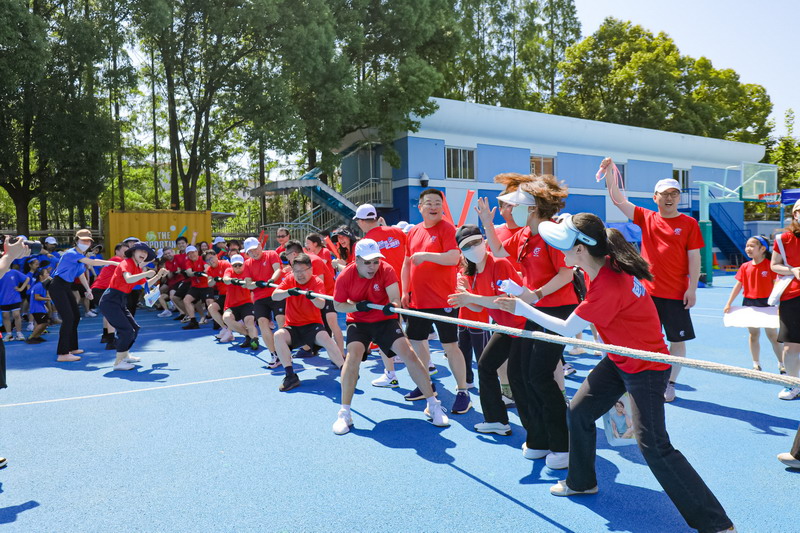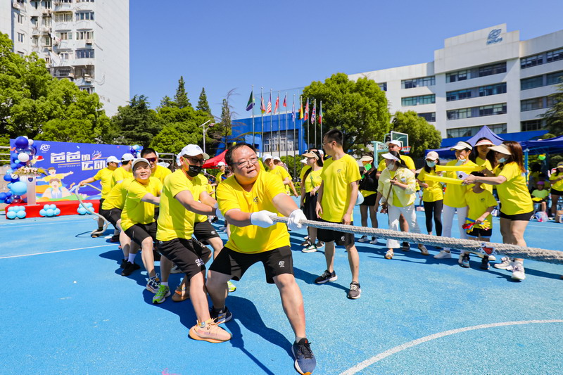本次活動分團體競技類與親子互動游戲2大板塊。集體拔河不僅考核力量,也是考核團隊默契的運動。孩子們為參與拔河的爸爸們振臂吶喊,加油鼓勁。