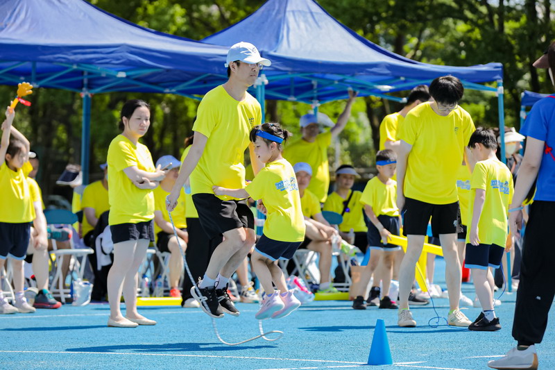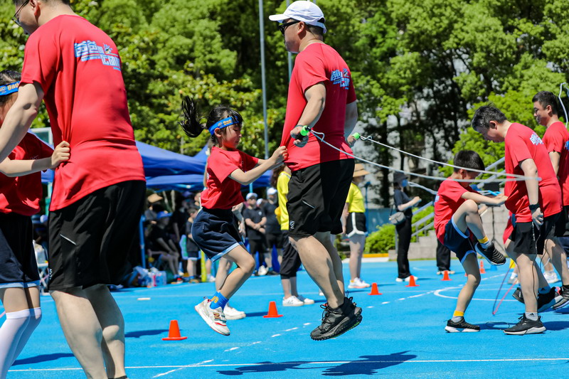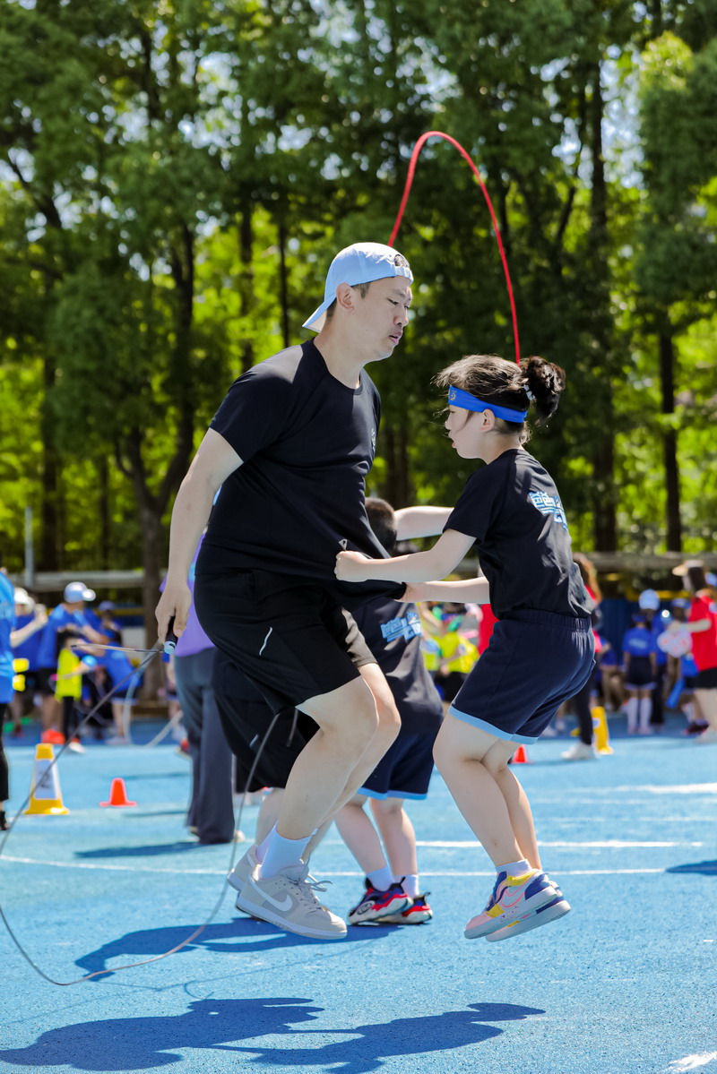 親子跳繩賽之前,孩子們和家長們就在家里苦練多日,今天一定要好好秀一把。通過親子跳繩,孩子與家長之間的感情得以升溫、信任得以提升。