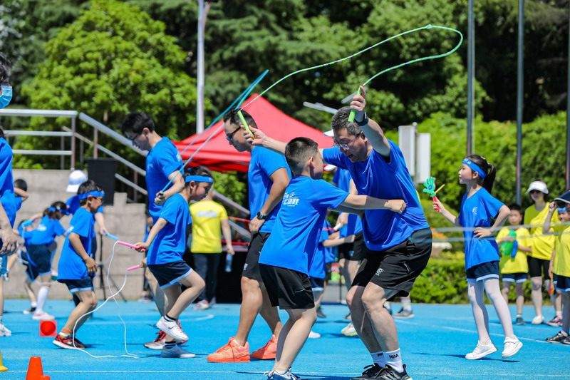 親子運動游戲環節將活動推向白熱化。6個Spark游戲,學生帶著爸爸體驗了日常體育課上運動的快樂;6個兒時游戲,爸爸則將孩子帶回他們的孩童時代。
