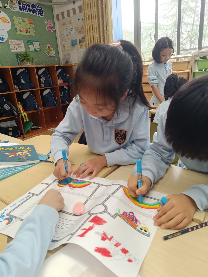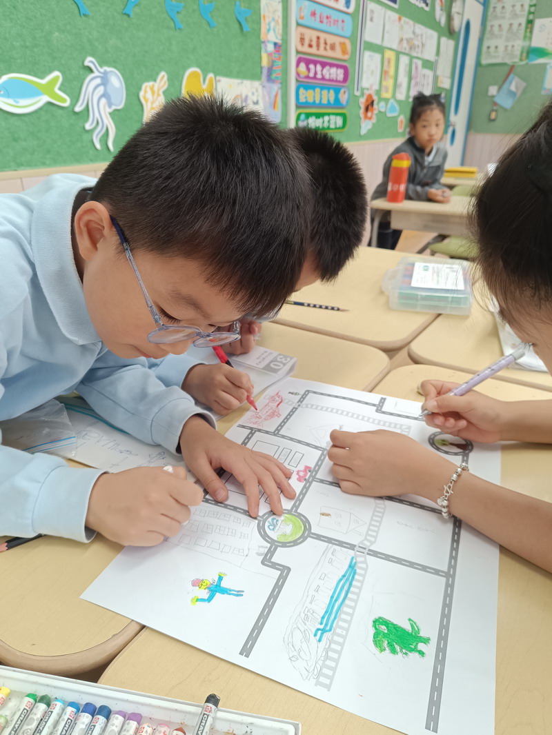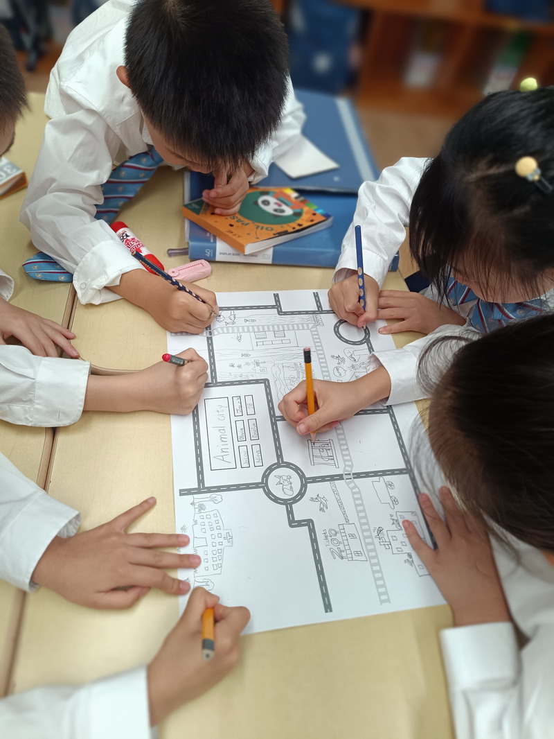 小朋友們在外教老師的帶領下認識社區里的人、地點和交通工具。通過討論和頭腦風暴,他們掌握了構成我們日常生活基礎的錯綜復雜的關系網。