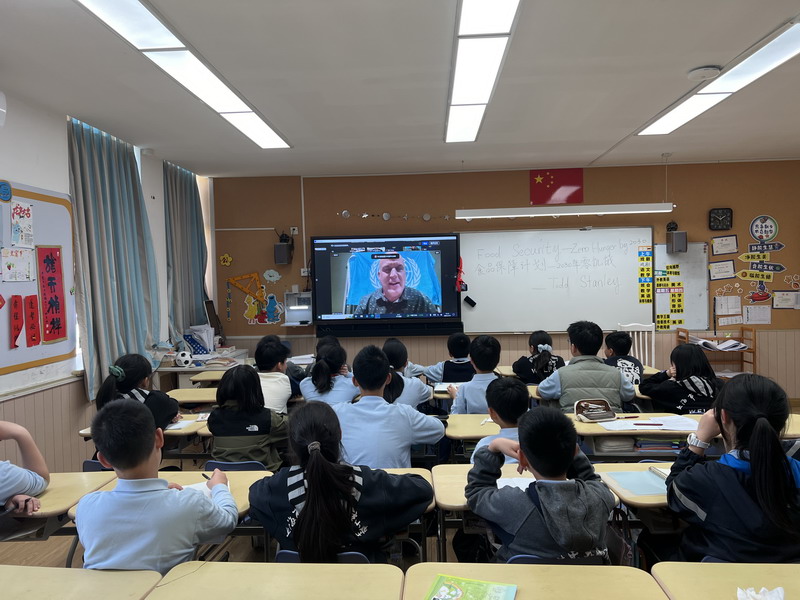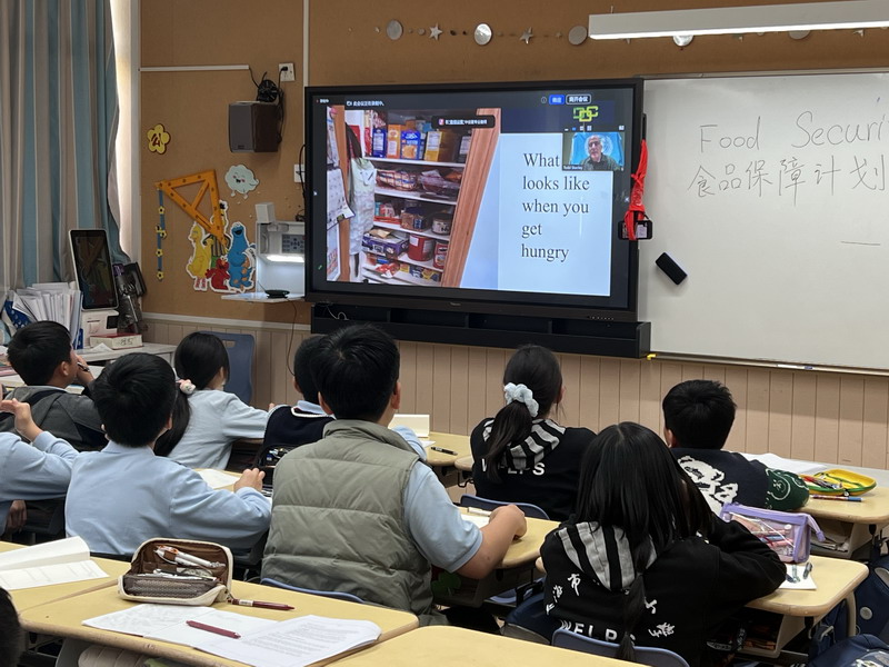 Todd老師深入淺出地為孩子們介紹了世界上饑荒的存在現狀。世界上還有7.5億人嚴重缺乏食品保障,甚至可能幾天吃不上一頓飯;平均每年有900萬人死于饑餓或者饑餓相關原因。這些驚人的數據在平時生活富足的孩子們心中掀起了不小的波瀾。Todd老師特別為同學們介紹了“世界糧食計劃署”作為聯合國設立的人道主義組織,為消除饑餓做了大量工作,幫助了上億人實現了溫飽。而同學們最關心的是,我們可以做什么去幫助那些還在忍受饑餓的人們。Todd老師告訴同學們,我們要少浪費糧食,也可以通過參與宣傳食品保障為實現全世界的零饑餓做出貢獻。通過這次講座,同學們感受到了世界并不是僅僅有我們看到的繁華,在世界的很多角落,還存在著饑荒。而同學們作為新一代的主人翁,從現在的點點滴滴做起,也可以幫助到正在經受饑餓的人們。