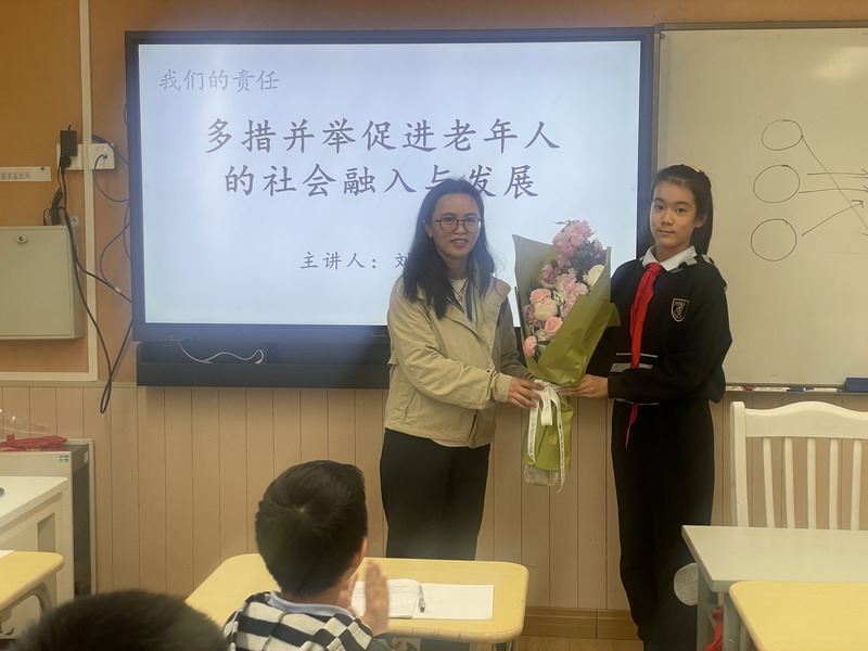 上海師范大學的劉雯薇教授為5C班的同學們分享了《多措并舉促進老年人的社會融入與發展》的講座。