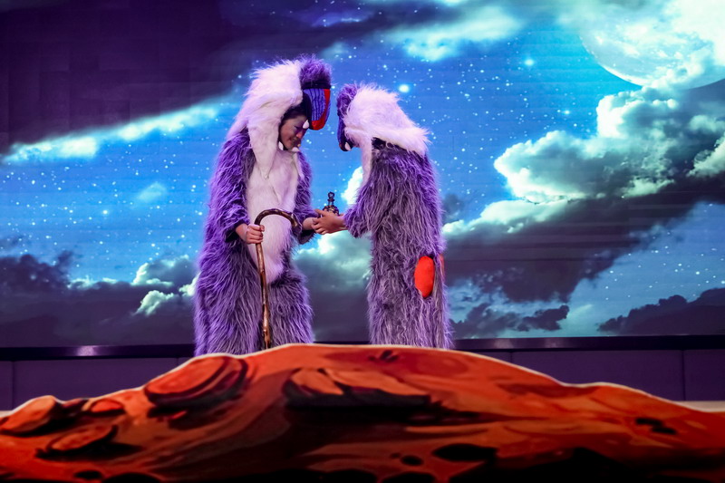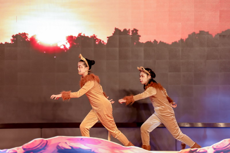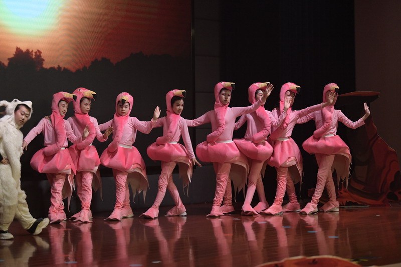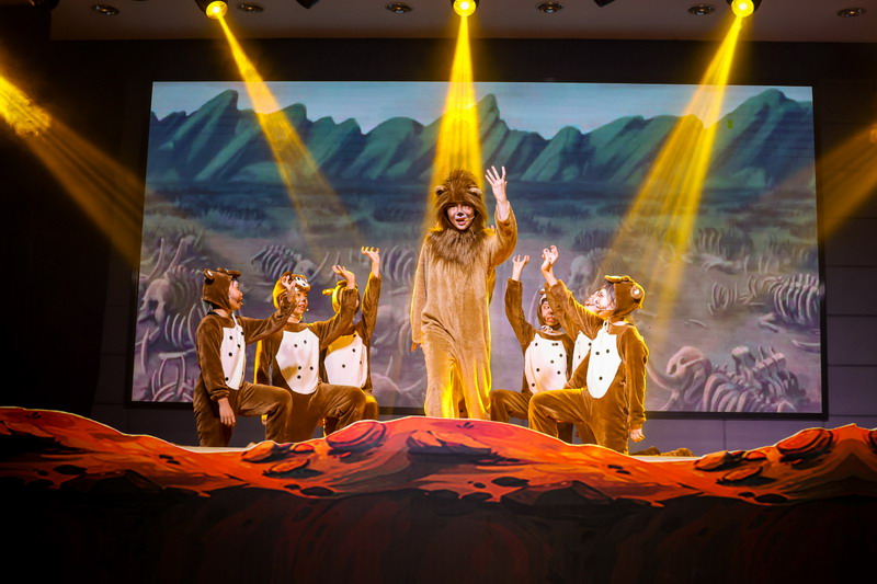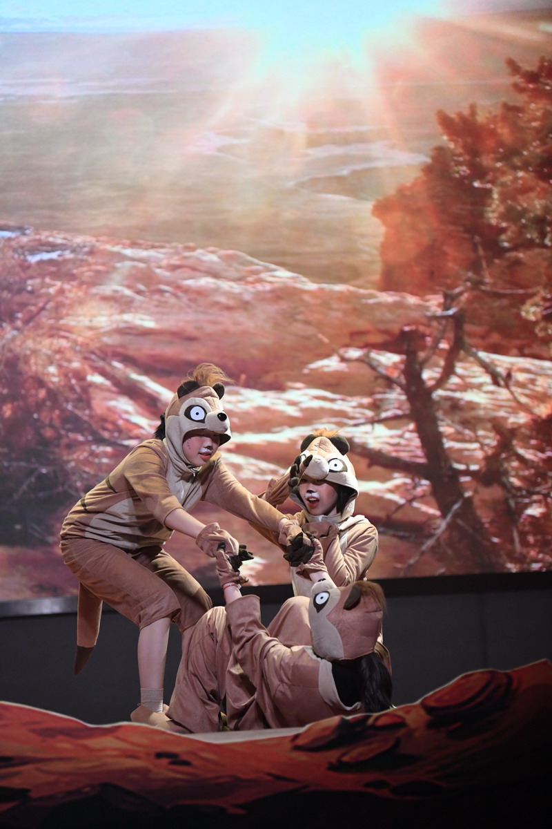 一場大戲凝聚了全體師生的智慧與心血。群像動物在形體陶老師的舞蹈訓(xùn)練后,盡情展現(xiàn)了草原動物的和諧之美,廣袤草原的壯麗之美。燈光音響在一次次大聯(lián)排中調(diào)整完善,精益求精。