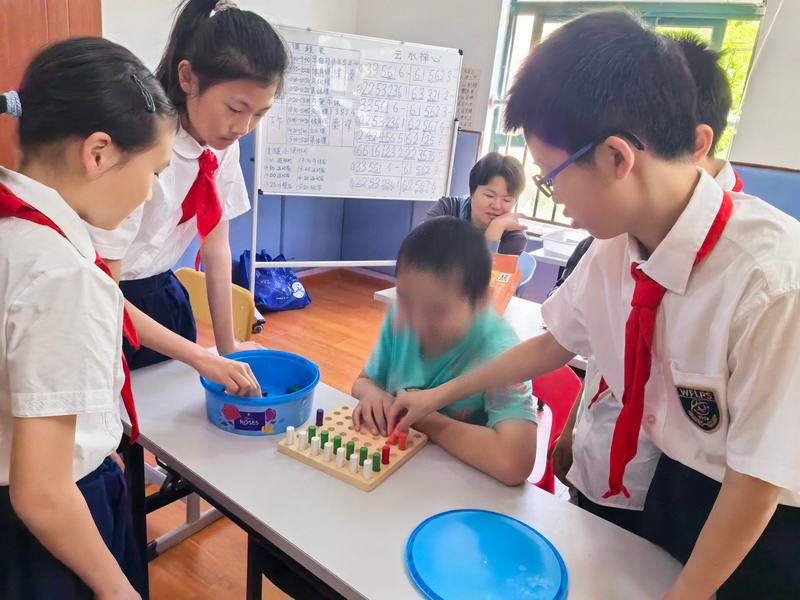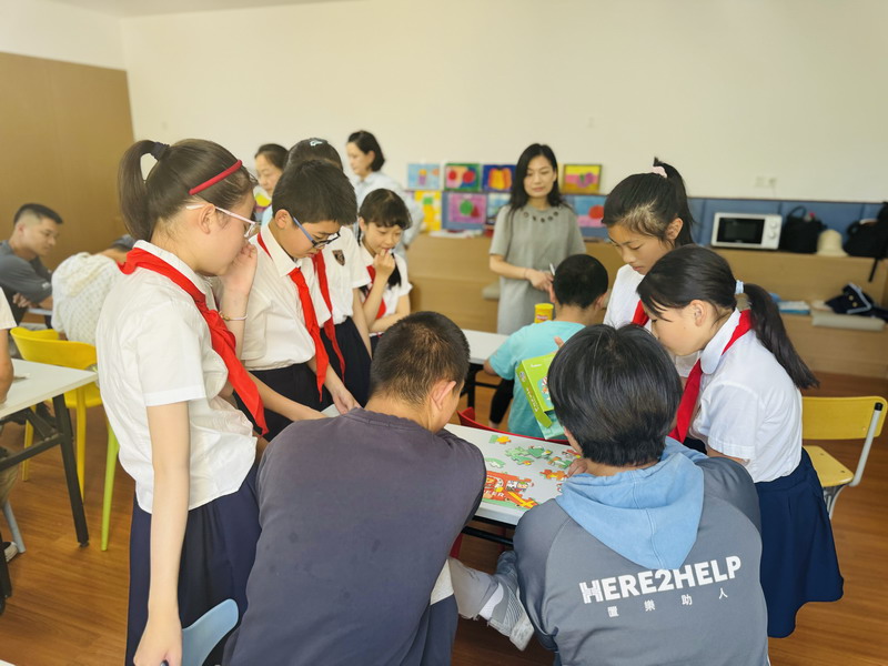 同學們在專業老師的指導下,也做了一次小志愿者,和這群“來自星星的孩子”親密互動,教室里充滿了歡聲笑語。“原來孤獨癥和我們想的不一樣,如果以后在公眾場合遇見他們,我一定會幫助他們和和周圍的人們解釋!”
