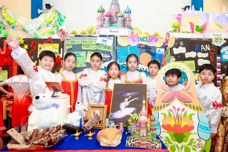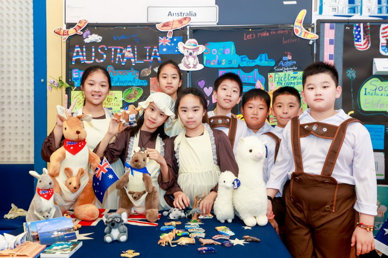 畢業(yè)課程中,同學(xué)們領(lǐng)略了世界文化的博大精深,采擷了語(yǔ)言文字的趣味盎然。他們身著各國(guó)服裝,在精心設(shè)計(jì)的畢業(yè)展板前,向來(lái)賓介紹畢業(yè)課程取得的成果。