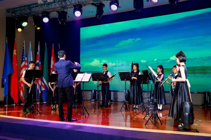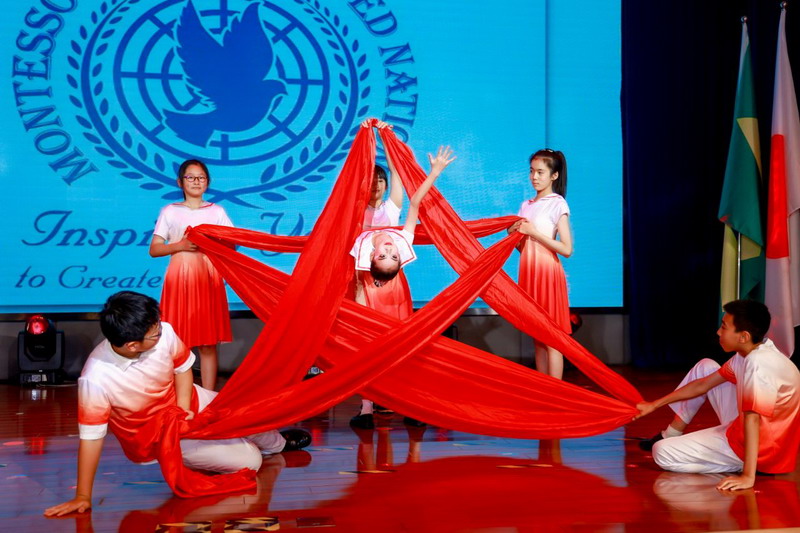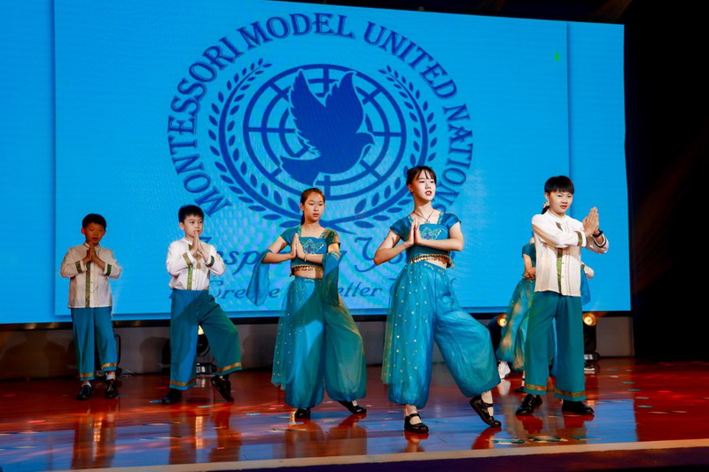 各國(guó)風(fēng)情的特色音樂(lè)聲中,全體五年級(jí)同學(xué)化身文化使者,翩翩起舞,他們用音樂(lè)和舞蹈展現(xiàn)了各國(guó)的文化與魅力。