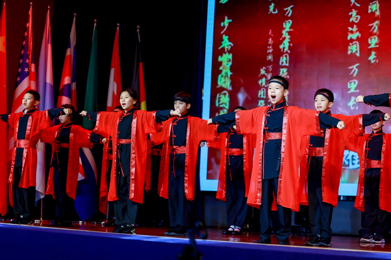 《少年中國(guó)說(shuō)》吟誦現(xiàn)場(chǎng)更是讓人心潮澎湃,“少年智則國(guó)智,少年強(qiáng)則國(guó)強(qiáng)”, 志當(dāng)存高遠(yuǎn),這是世外少年敢為天下先的責(zé)任和擔(dān)當(dāng)!