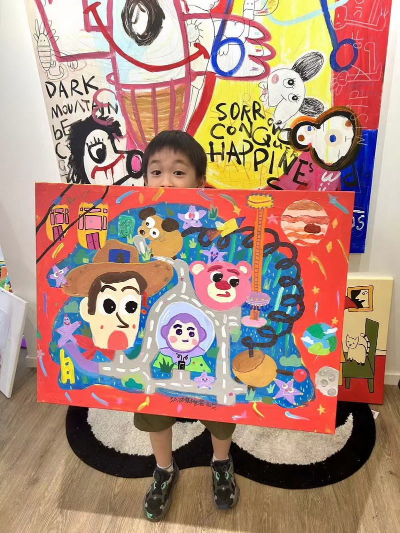 在繪畫的世界里,小謝找到了表達內心的方式。對他來說,畫筆不僅僅是一種工具,更是一扇通往心靈的窗戶,透出愛、希望與快樂。每一次創作,都是一場奇妙的探索和冒險,每一種顏色的搭配,每一種繪畫技巧的嘗試,都是通往未知的藝術王國的一次勇敢踏足。在這里,沒有界限,只有想象的無限可能。