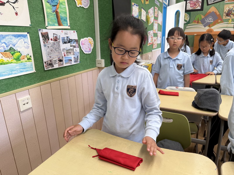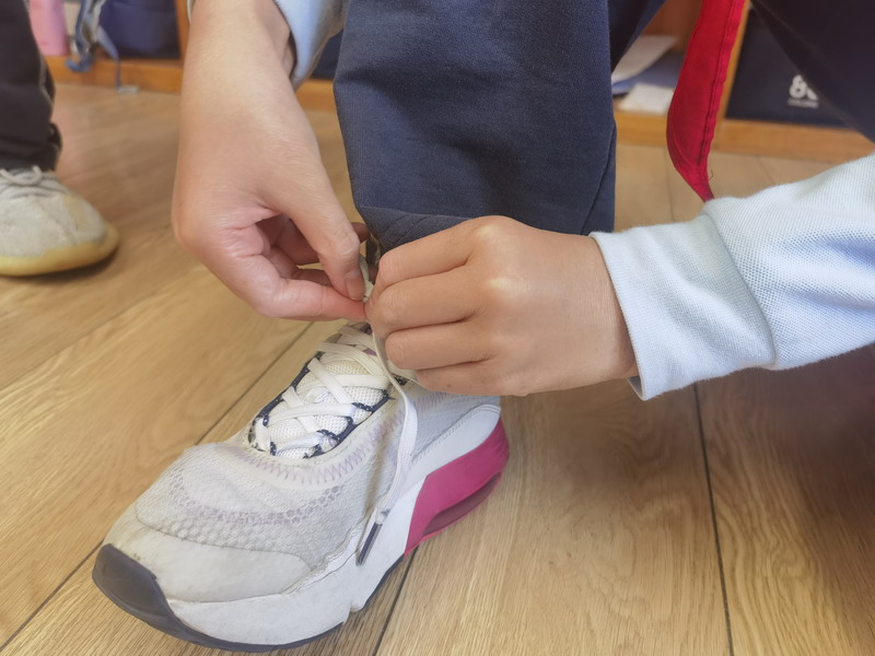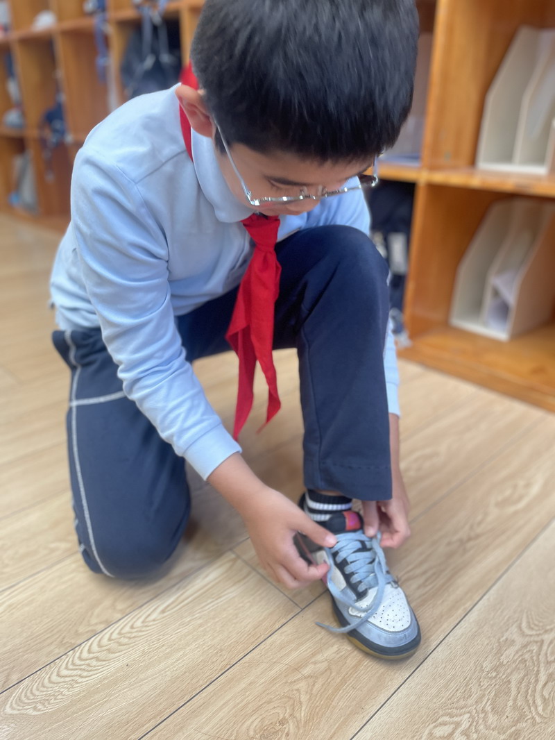 一年級的孩子們迎來了一場趣味盎然的“爸爸的工具箱”主題活動。孩子們通過觀察、觸摸和模擬操作,認(rèn)識了不同工具的功能與使用方法。今天,他們化身“自理小達(dá)人”,在老師的指導(dǎo)下學(xué)習(xí)系鞋帶、疊熊貓校服和調(diào)整書包肩帶。稚嫩的小手反復(fù)練習(xí),專注的眼神里寫滿自豪。“我會自己系蝴蝶結(jié)了!”孩子們興奮地展示著勞動成果。