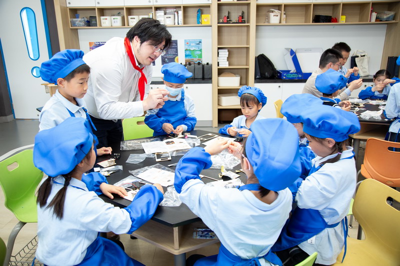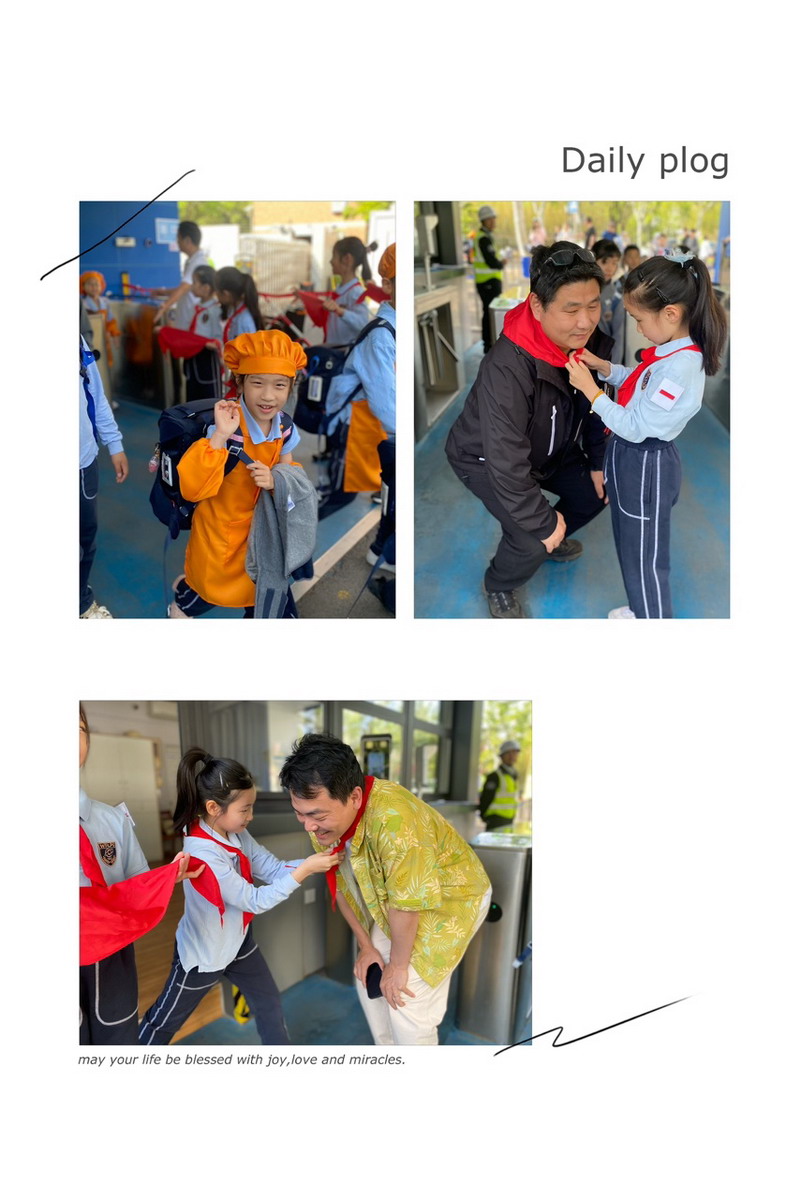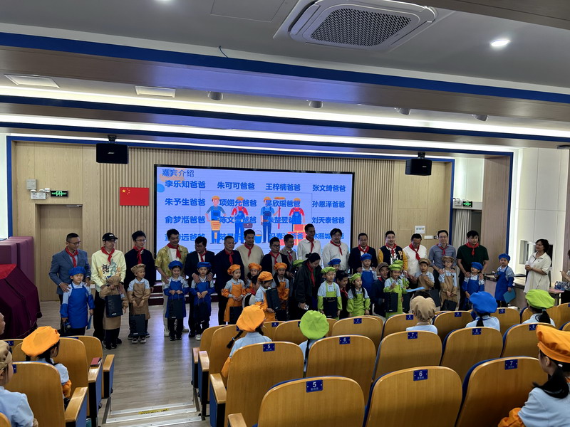 一大早,一年級的爸爸們穿上帥氣的衣服,早早地來到學校。少先隊員們也特別熱情,給每位爸爸戴上紅領巾,儀式感滿滿!這些爸爸們可不是來湊熱鬧的,他們可是帶著“絕活”來的。園丁爸爸、大廚爸爸、工程師爸爸、DT爸爸齊聚一堂,就像是一個“超級奶爸天團”,要給孩子們帶來一場超有趣的勞動大冒險。