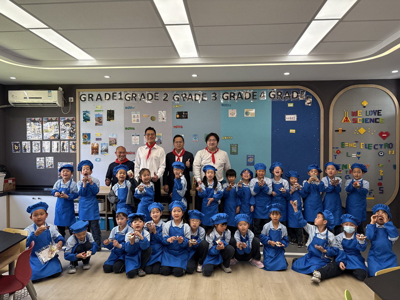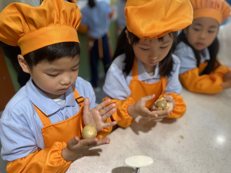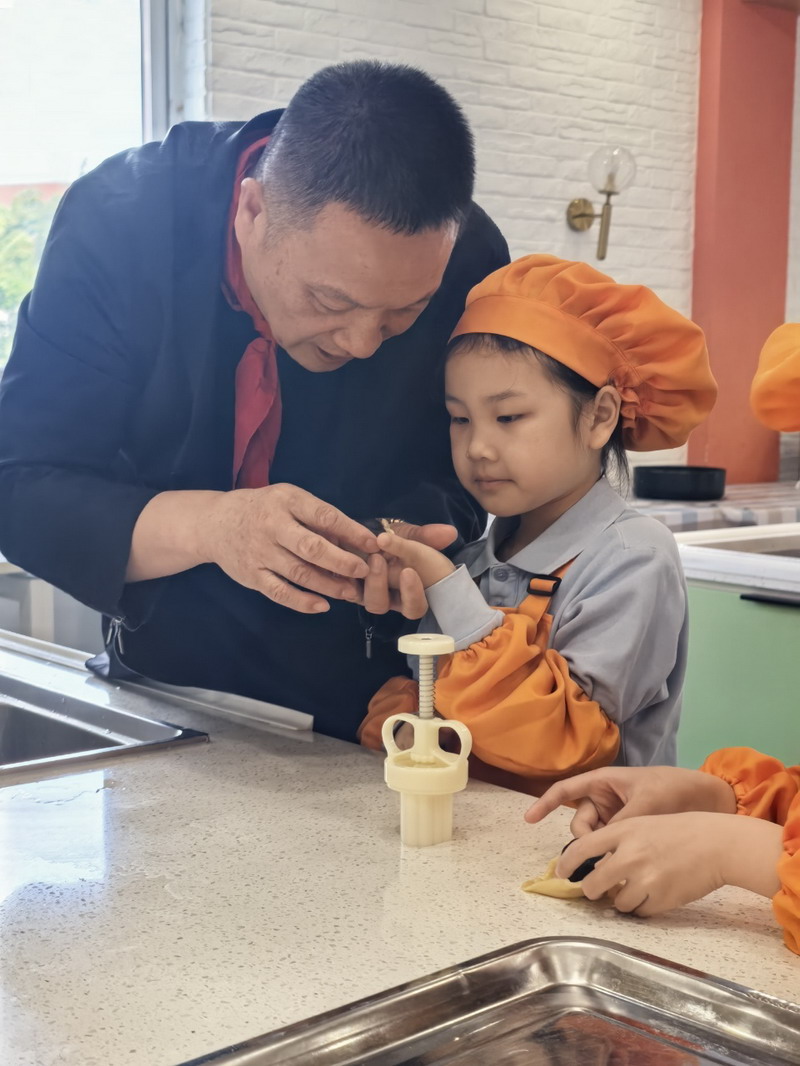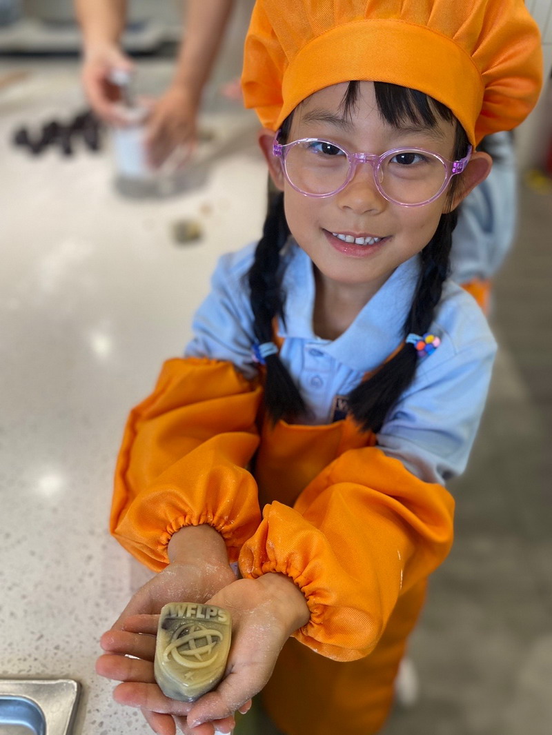 大廚爸爸帶著孩子們來到云廚房,教他們做香噴噴的美食。孩子們穿上圍裙,變成了“小小廚師”。學得有模有樣,揉面、搓面、壓制——特質的磨具印著WFL,可自豪啦,“外面買不到哦”。孩子們嘗著自己做的美食,臉上洋溢著滿滿的喜悅。
