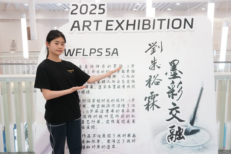 在“墨彩交融”的光影之間,劉朱裕霖用線條凝固瞬間,以色彩捕捉夢境,更以筆鋒承載古今。她在書與畫的世界中執著前行,用稚嫩卻真摯的筆觸詮釋著藝術的力量與溫度。這場展覽,是她一路成長的注腳,也是未來藝術旅途的啟程。愿她帶著對美的熱愛,繼續在創作的路上自由馳騁,向光而行。