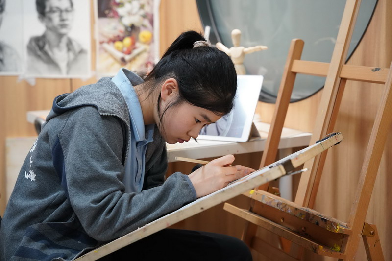從8歲起,她的素描本便悄悄塞滿了“會跳舞的靜物”。不論是生活中轉瞬即逝的姿態,還是人物表情中微妙的情緒,都被她敏銳地捕捉并轉化為炭筆下流動的線條?!都倌辍芬蛔?,刻畫出少年沉浸于音樂中的專注神情,而展覽中的動態速寫則精準呈現出人物手足的結構和運動瞬間的張力。劉朱裕霖說:“速寫本里藏著我觀察世界的眼睛。”那份沉靜與敏銳,在畫面中悄然流淌。