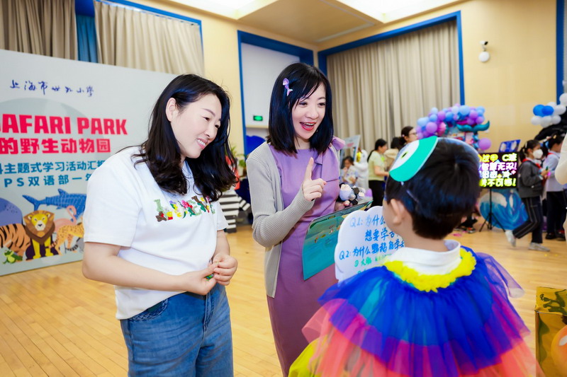 開學(xué)伊始,世外小學(xué)雙語一年級的同學(xué)們在多學(xué)科老師的指導(dǎo)下,進(jìn)行了野生動物的研究:他們自主選擇了雨林動物、海洋動物、極地動物和草原動物。探究課上,語文老師指導(dǎo)他們查找書籍、翻閱資料,發(fā)現(xiàn)野生動物身上的無數(shù)神奇。形體課上,舞蹈老師引導(dǎo)他們創(chuàng)編舞蹈,展現(xiàn)動物的野趣。科學(xué)課上,科學(xué)老師指導(dǎo)他們共同制作動物棲息地。人文課上,美術(shù)老師教會他們制作小報和動物相關(guān)展品。