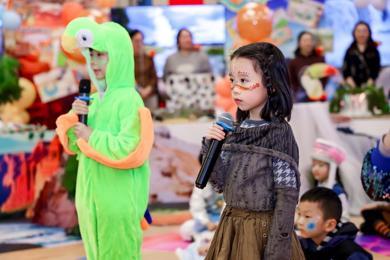 歌聲落處,四位小主持人踩著童聲的節(jié)拍登臺,清亮的嗓音如撥響的銀鈴:今天的體育館熠熠生輝,我們仿佛置身童話的世界,周游于神秘的海洋,在世界各地的自然奇觀里盡情徜徉。全場的期待化作熱烈的掌聲,大家一起拉開探索自然的序幕。