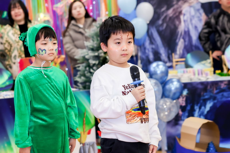 小研究員們各就各位,來賓們穿梭于各個展臺,或駐足端詳精巧的自然模型,或與學(xué)生展開趣味問答。為什么極光會有不同顏色?”“烏尤尼鹽湖為什么像鏡子?面對一個個問題,學(xué)生應(yīng)答自如,童稚的講解里滿是對自然的好奇與探索欲,體育館內(nèi)的每一寸空間,都洋溢著探索的熱情與山海的詩意。