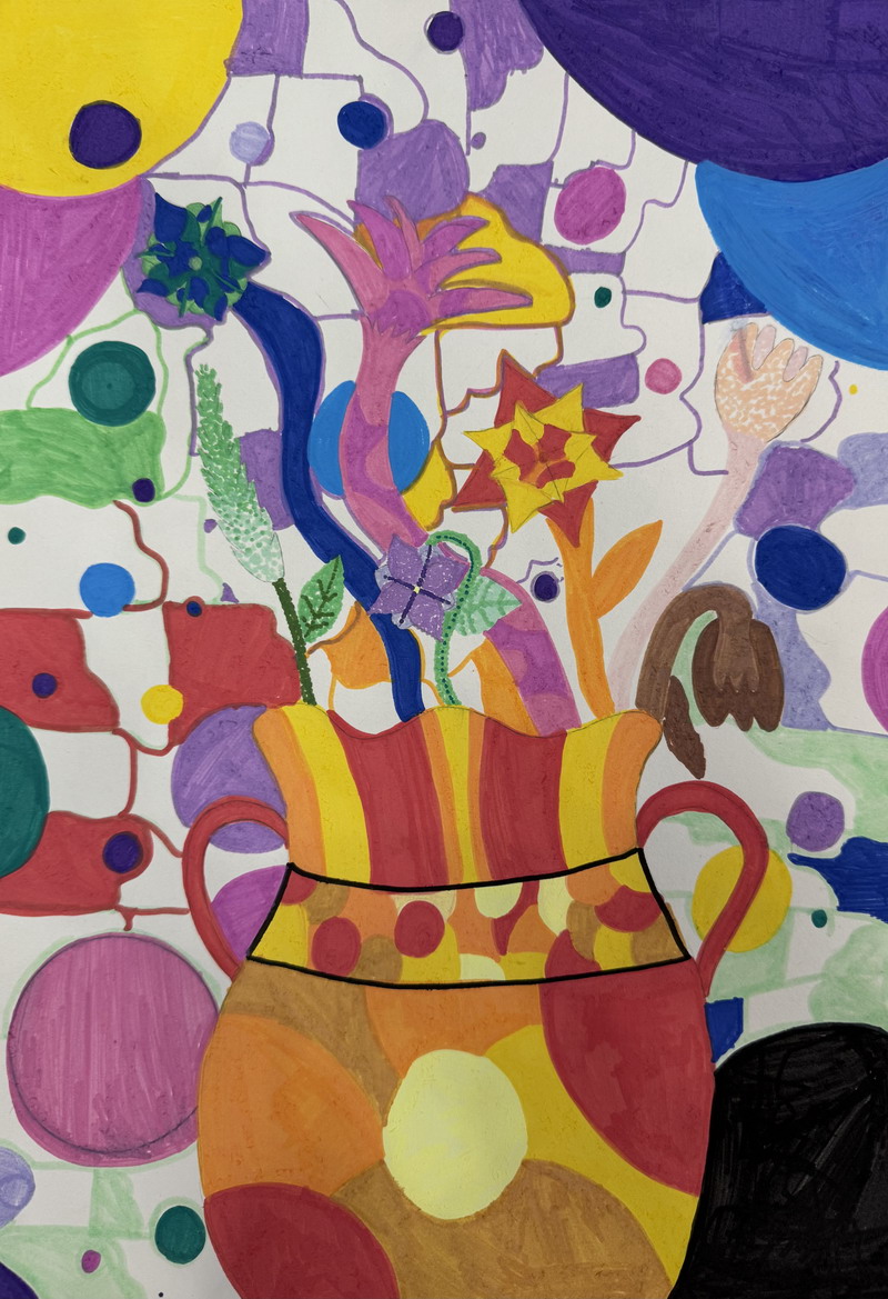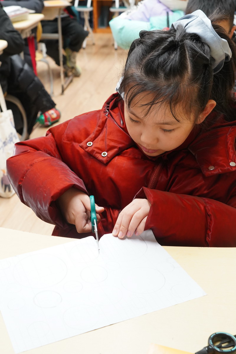 在隨后的美術課堂上,孩子們從觀察生活中的圓形物體,到嘗試用不同工具畫圓、剪圓、疊圓;從構思畫面結構,到反復調整色彩與節奏;每一幅作品,都是孩子們在課堂中一步步完成的學習成果。