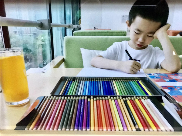 境內部的孩子們分年級進行了序列活動,以慶祝母校生日快樂。"大手牽小手"的活動中,五年級的志愿者哥哥姐姐們精心準備了一堂校史課,為一年級的弟弟妹妹們講解學校發展的歷史,弟弟妹妹們聽得津津有味;接著,志愿者們牽起弟妹的小手,帶著他們游覽校園,介紹每一個專業角的布置用意和使用規則,并提醒他們愛護學校公物,讓小朋友們通過實地考察的方式增進了對學校的了解;回班后,孩子們拿出畫筆,將今天的所見所聞畫下來,為母校送上生日祝福。二年級的孩子們今天迎來了陳諾小朋友的個人畫展,他們在畫展開幕式上變身棋盤中的"小人",玩起了有趣的棋盤游戲,接著他們去參觀了畫展,對于展出的作品驚嘆不已。最后,他們回班拿出了小畫板,在班主任的帶領下來到學校里最喜歡的角落,找一個舒服的姿勢坐下開始靜靜地寫生,用畫筆勾勒出校園的美景。三年級的學生們創作了"我與世外共成長"的主題俳句,并將自己創作出的俳句寫在了扇子上,美化后一面面個性十足的扇子表達了孩子們對母校深深的熱愛;四年級的內容是動手設計個性獎狀,用他們自己的理解為"最美執勤員"、"美食之星"、"禮儀之星"等榮譽稱號設計獎狀,獲獎作品將會在結業式上替換掉我們原有的獎狀,因此孩子們興趣十足,設計出了許多令人驚嘆的獎狀;五年級的內容是"我是小小服裝設計師",他們觀看世外校服的發展史后,動手設計世外小學未來的校服。最后,校慶活動中獲獎的作品均布置在門廳供學生參觀,孩子們放學時靜靜地觀看,用心地感受,依依不舍地離開了校園。