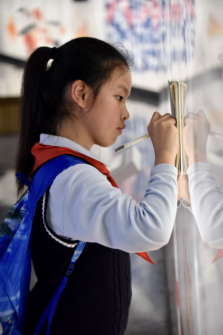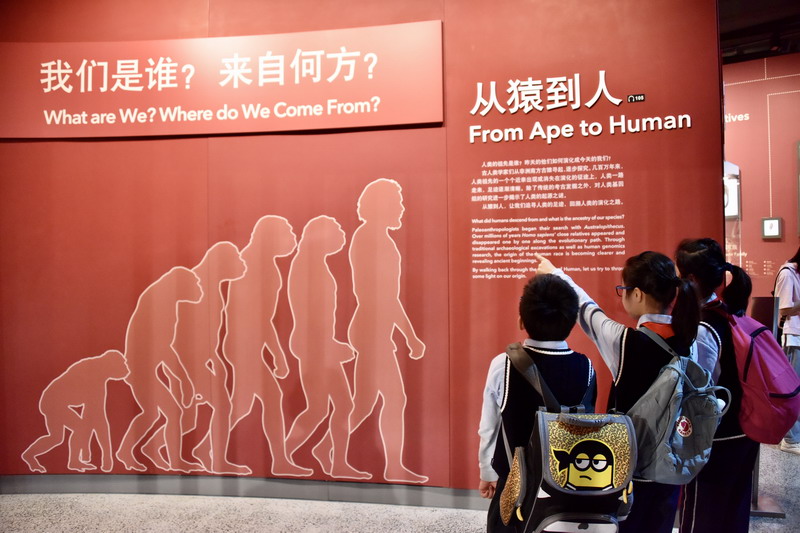 下午,孩子們分組進行主題探究。大家邊走邊看,邊看邊學。有的駐足在科普知識圖文前,探尋自然起源之謎;有的在看微電影,解讀標本背后的故事;有的在玩互動游戲,探索大自然的奧秘。大家還時不時地拿出自己的筆記本,把眼前的一幕幕用筆記錄下來,回到學校以后作為制作小報的資料。