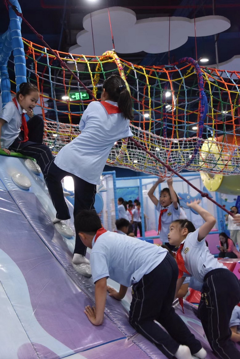 之后,喜歡冒險(xiǎn)刺激的小朋友來(lái)到九曲十八彎的“滑滑梯”項(xiàng)目。膽子大的小朋友爭(zhēng)先恐后爬到高處,有序地玩著項(xiàng)目。一次不夠,第二次,第三次……直到內(nèi)心的那份尋求征服的欲望得到滿足,才肯罷手。