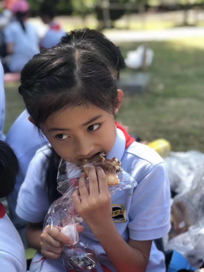 上午的活動(dòng)已然耗去大部分體力,及時(shí)需要補(bǔ)充體力,加血復(fù)活的我們,進(jìn)入秋游的進(jìn)餐環(huán)節(jié)。在此過程中,小朋友以班級(jí)小組為單位,分享著自己前天精心準(zhǔn)備的美食。帶隊(duì)老師也猝不及防地收到各個(gè)小朋友的投食,那一雙雙小手傳達(dá)的是濃濃的愛師之情。
