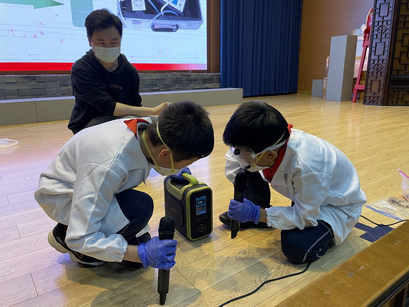 之后,三(2)班的葉昊成和顧溍鎬兩位小朋友為大家?guī)?lái)了專業(yè)的儀器,現(xiàn)場(chǎng)演示了在廚余垃圾中找到可用能量的過(guò)程。讓我們對(duì)垃圾的再利用又有了新的認(rèn)識(shí)。