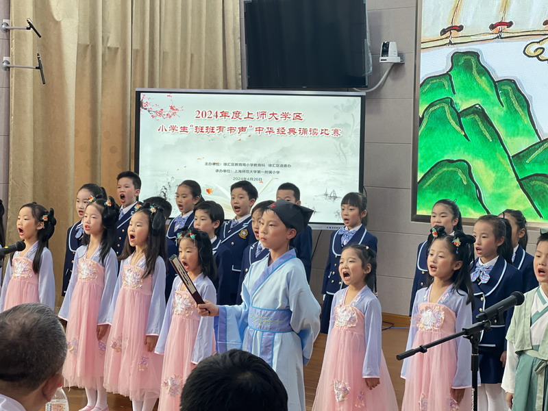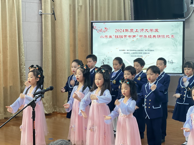 為傳承弘揚中華優秀語言文化,激發學區學生對中華經典的熱愛,提升其語言文字應用能力和語言文化素養,助力書香校園建設,4月26日,上師大學區組織開展了學區小學生“班班有書聲”中華經典誦讀比賽。