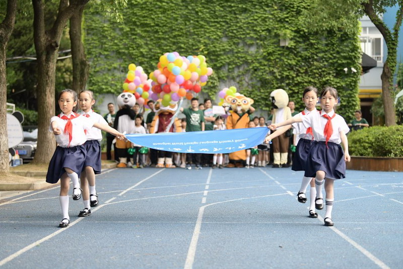 在莊嚴的火炬接力儀式后,張校長宣布本次活動開始,并和閔校張及家委們一起放飛夢想的氣球。