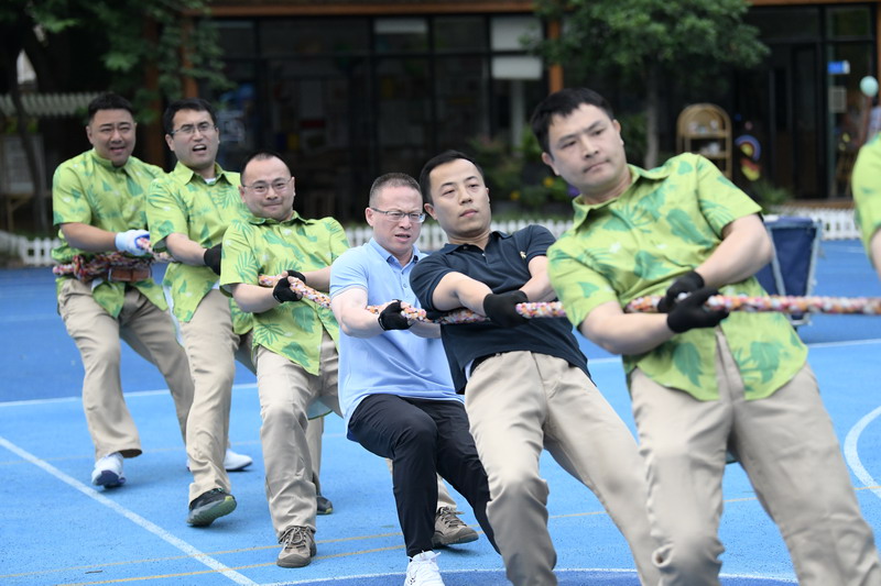 最精彩的是拔河比賽,這是四個班級重量級爸爸們的較量,不僅考驗爸爸們的力量,更加考驗團隊的凝聚力和意志力!場上的爸爸們拼盡全力,賽場上充滿了加油吶喊聲。