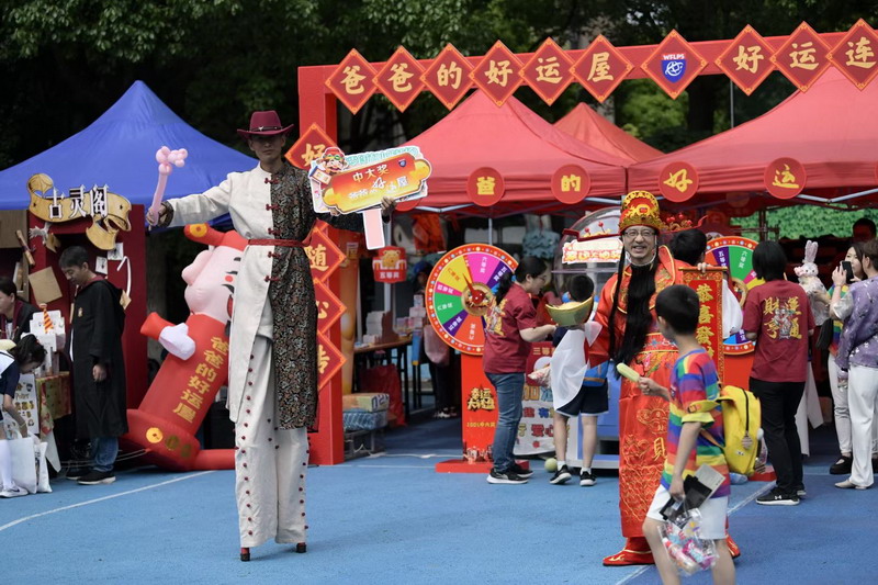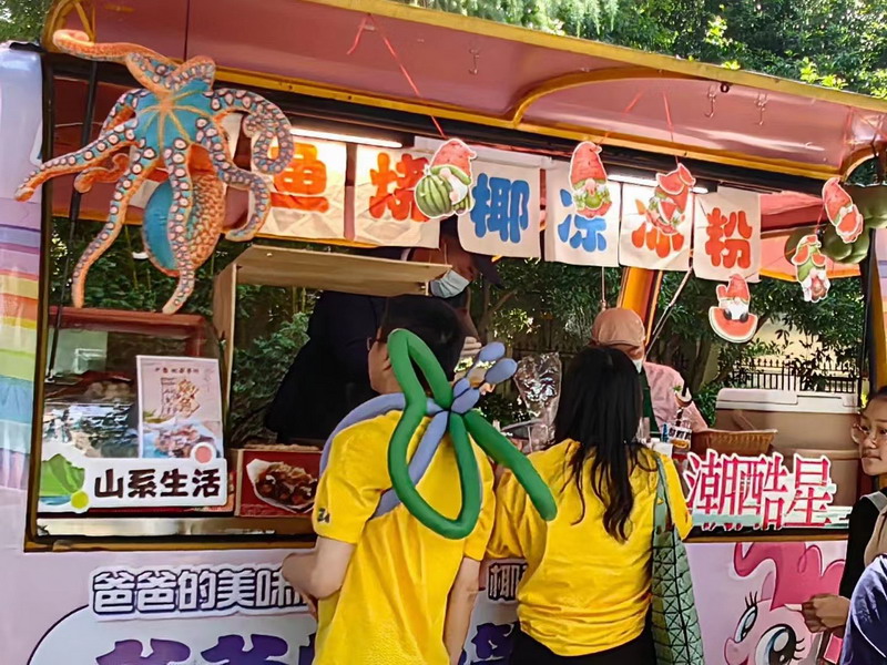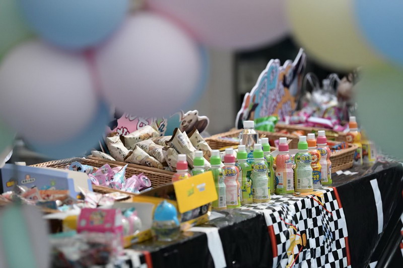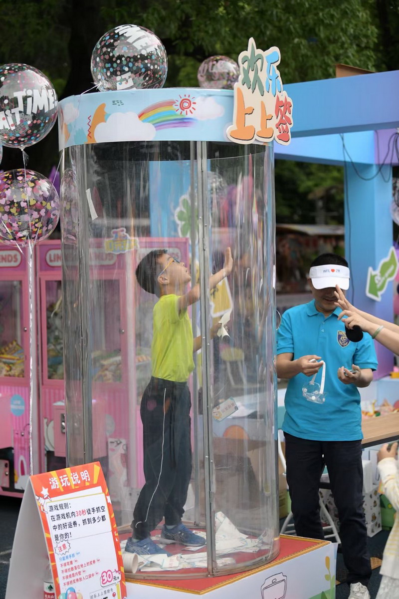 為了籌集更多的愛心善款,爸爸們使出了十八般武藝來吸引小顧客,吆喝聲、叫賣聲此起彼伏。
