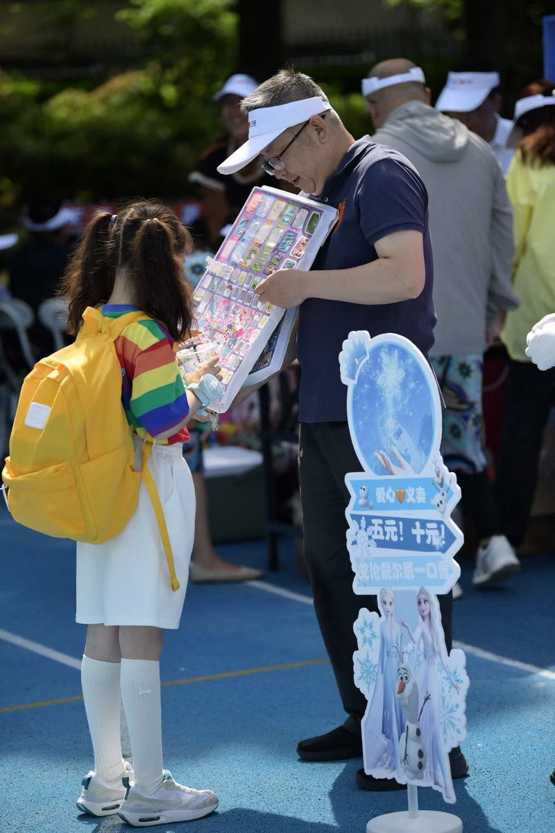 5月29日上午8點整,“爸爸的后備箱”愛心義賣活動在操場正式拉開帷幕。