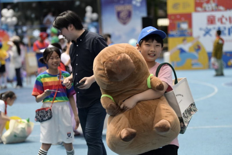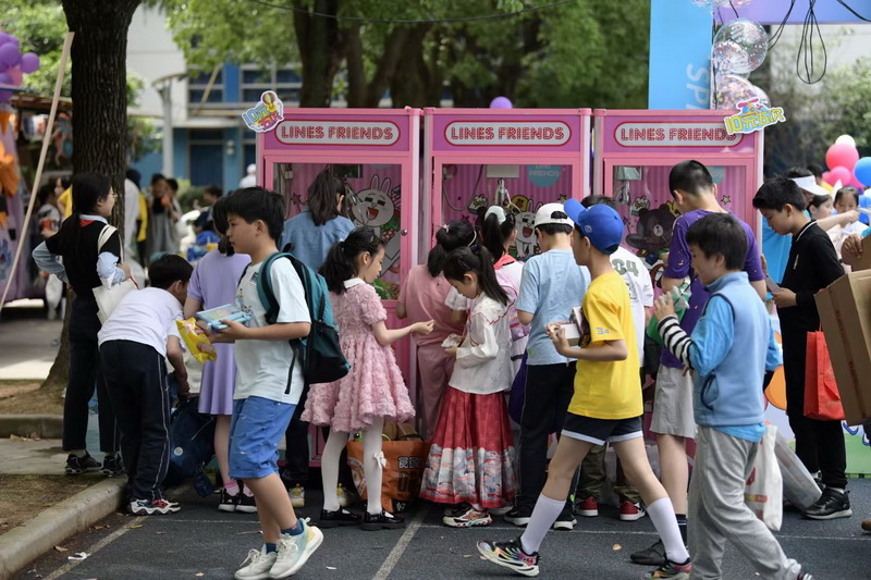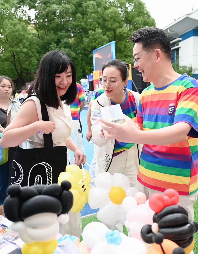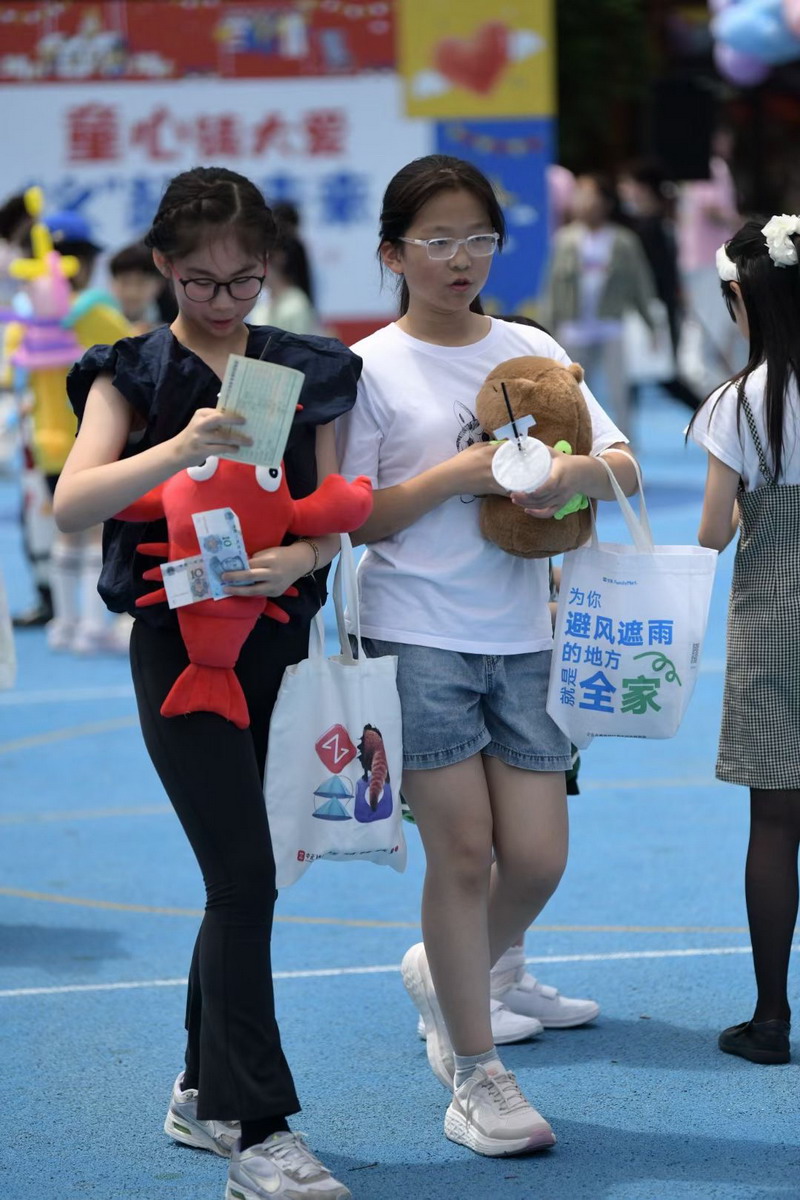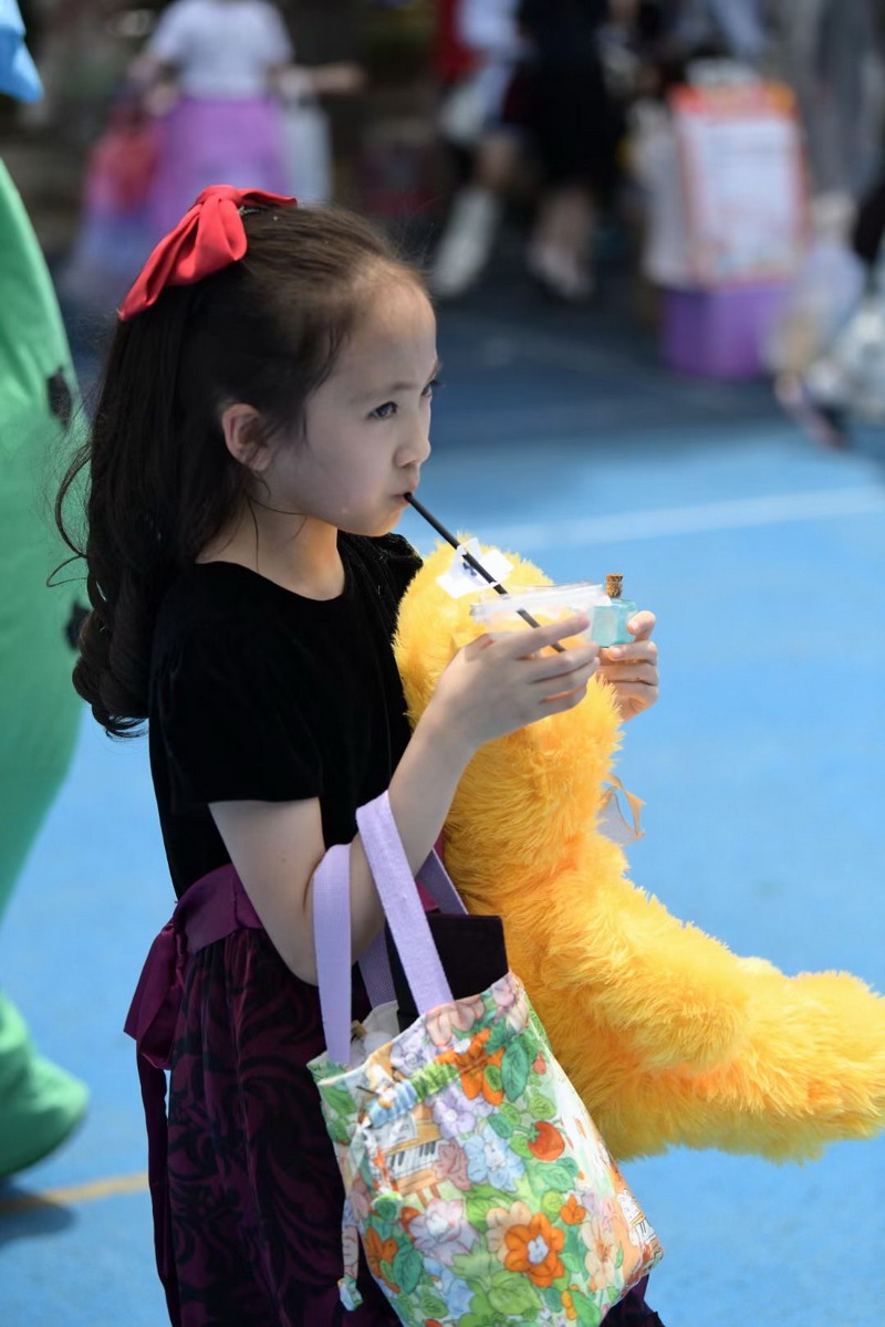 小朋友們三五成群擁到各個攤位,精挑細選,找尋自己心儀的物品。各個攤位前人頭攢動,歡聲笑語,整個校園成為了歡樂的海洋。