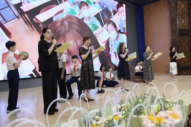 時(shí)光的河入海流,沒有哪個(gè)港口是永遠(yuǎn)的停留。在那個(gè)鳳凰花開的路口,親愛的老師目送孩子們勇敢向前走。五年級的全體老師為畢業(yè)生們帶來了詩朗誦及歌舞表演。