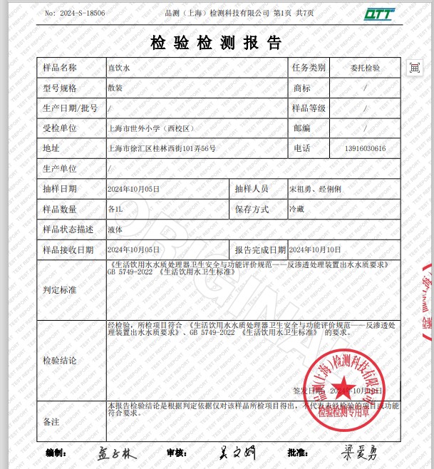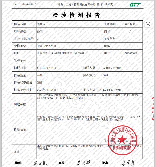 2024年10月水質(zhì)報(bào)告
