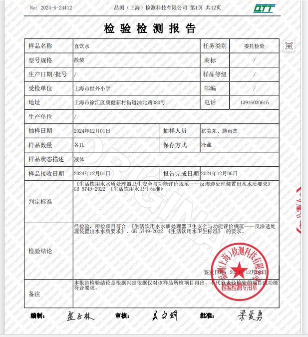 2024年12月水質(zhì)報告